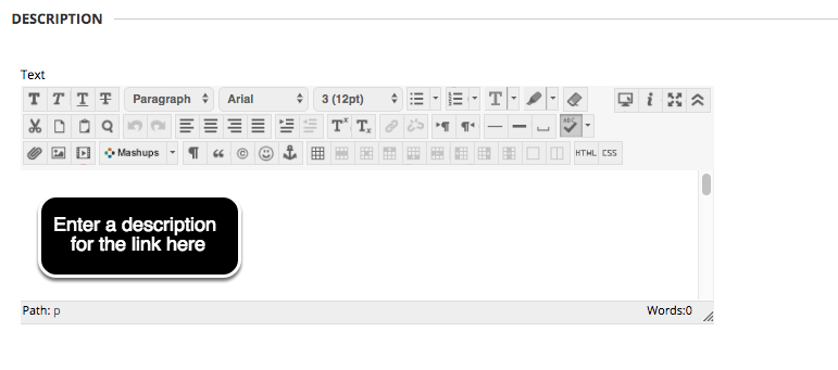 In the section labeled Description, you can use the text editor to enter a description for the link that would be shown to students.